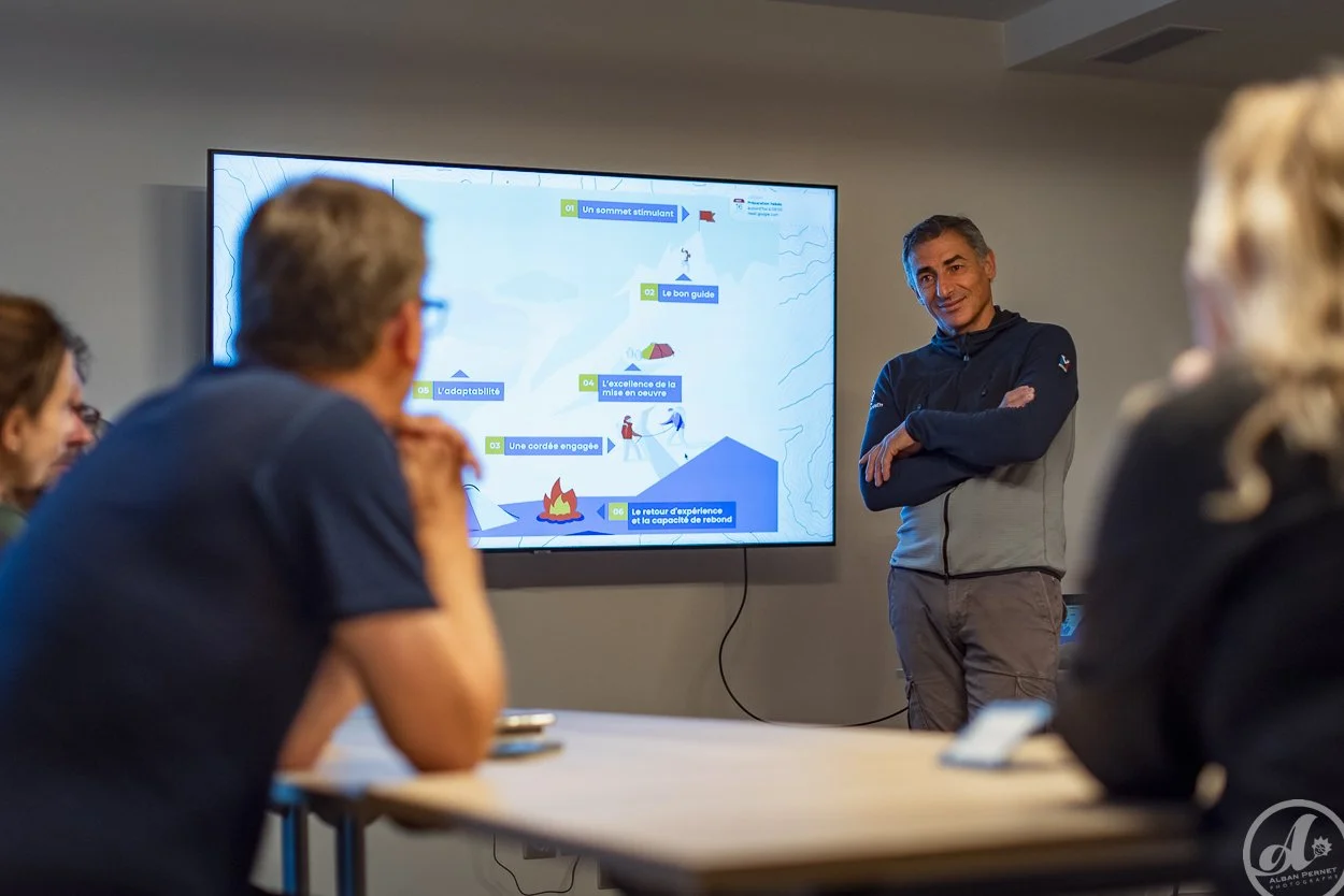La montagne impose des variables qu’on ne contrôle pas totalement : météo, fatigue, rythme, visibilité, itinéraire. Cette contrainte (modérée, encadrée) met les participants dans une dynamique proche de certaines situations business : informations incomplètes, temporalité serrée, enjeux humains, responsabilité.